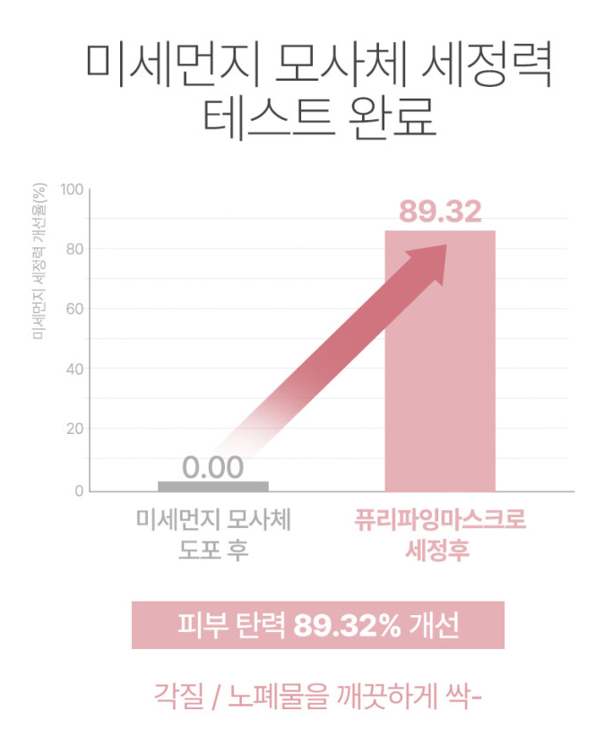 ✔ 미세먼지 모사체 세정력 약 89.32% 개선